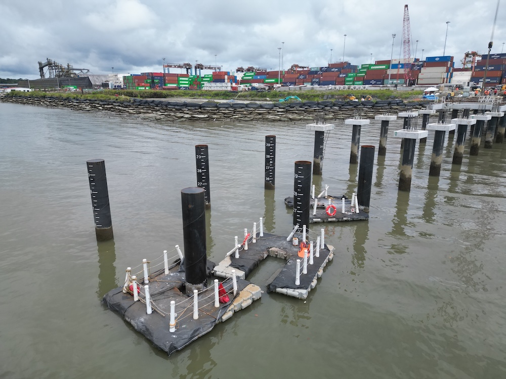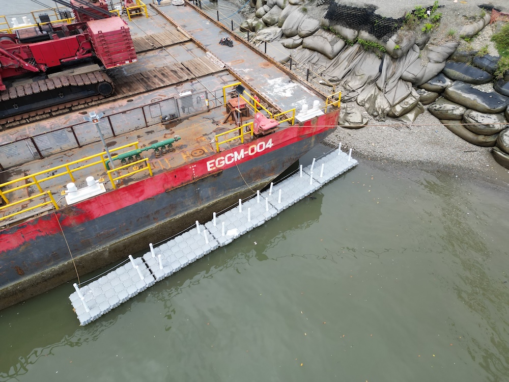 Plataforma flotante para dragado y bombeo. Gracias a las características técnicas de la tecnología Excel Dock, se pueden realizar soluciones industriales de trafico pesado.