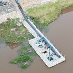 Para la adecuación y anclaje de una escalera basculante en un puerto en Buenaventura, fue necesario implementar una Plataforma de Trabajo Flotante para esta obra civil específica.